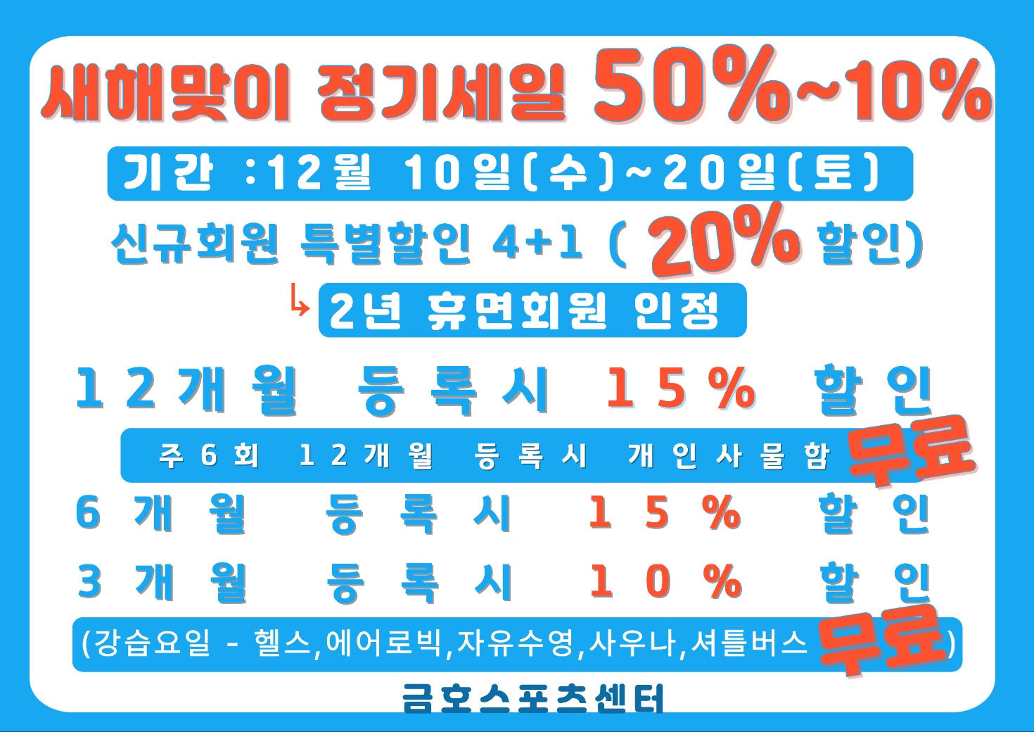 | 금호스포츠센터 겨울정기세일 50%~10% | |